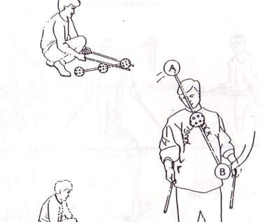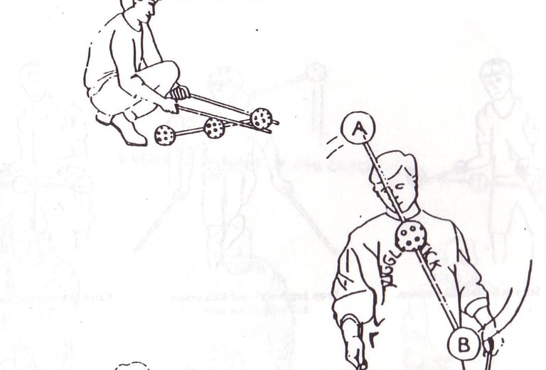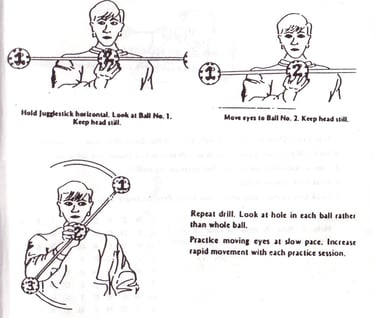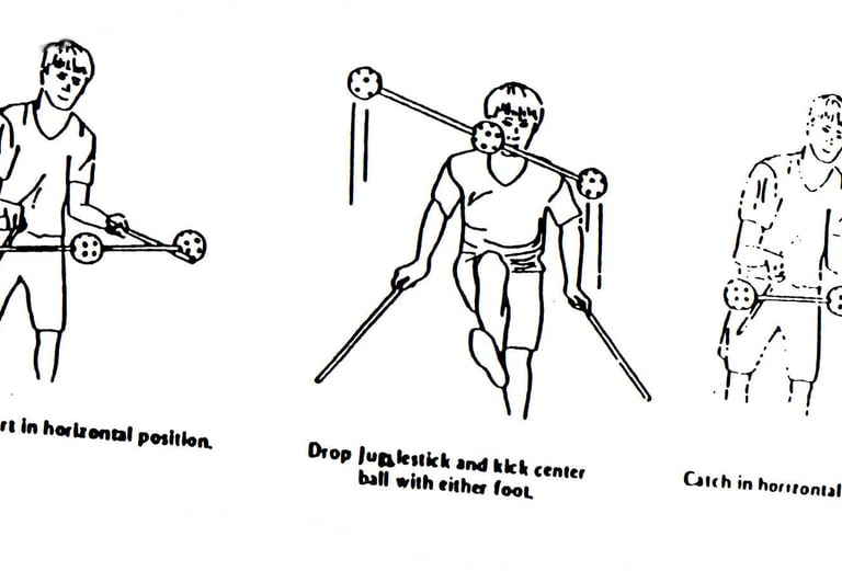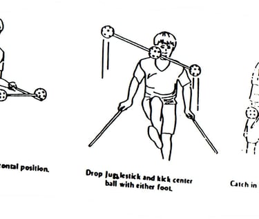 After success Jugglestick on ground, try the same exercise with Jugglestick lifted off the ground.