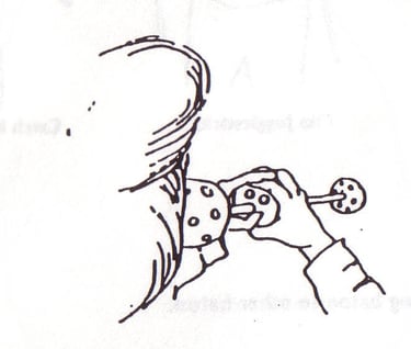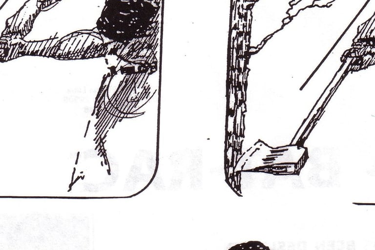 Form triangle as shown, with heels touching. Blade becomes 3rd side of triangle. Visualize string going from point where heels come together through ball to cup.